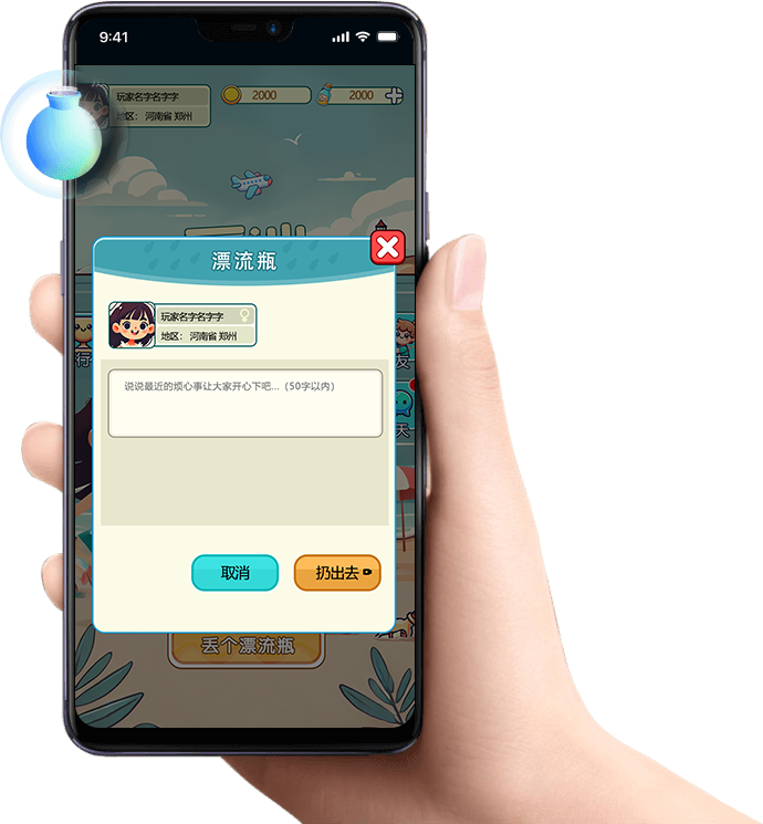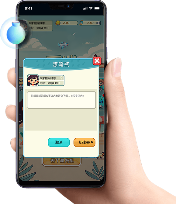 瓶子是以漂流瓶为主,集语音房、小游戏、广场、等 为一体的大型情 感交流软件。在这里,每天有2000万个漂流瓶被捡到 和扔出,你可 以畅所欲言去倾诉,也可以当个安静的倾听者。当然还 可以去聊天 房聊聊天,去游戏里面倒到水。